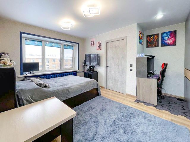-комната и кухня имеет правильную геометрическую форму, что позволяет функционально расставить мебель и технику