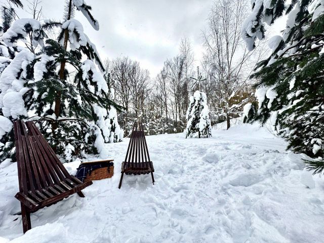 Баня 5 на 6 м из пеноблоков на ленточном фундаменте (парилка, моечная и комната) в рабочем состоянии. Вода и свет подведены. Слева от бани дровник под навесом. За баней устроен сарай-мастерская 2,5 на 5 м для хранения инструментов и инвентаря.