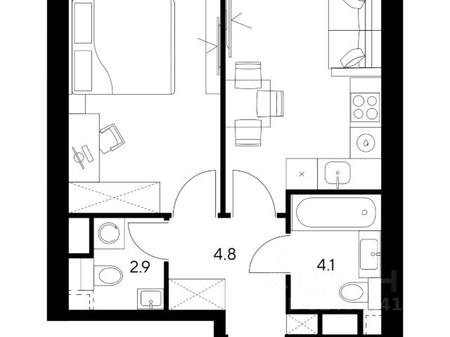 1-комн.кв. · 35,2 м² · 4/12 этаж