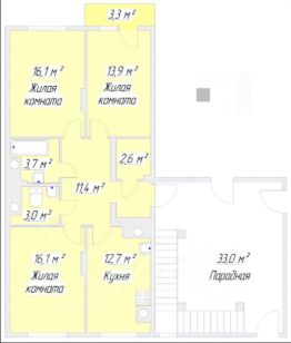 Функциональная планировка распределена на зоны, в одной часть квартиры находиться просторная кухня с гостиной, в другой зоне спальная родителей с выходом на балкон и просторная детская комната.