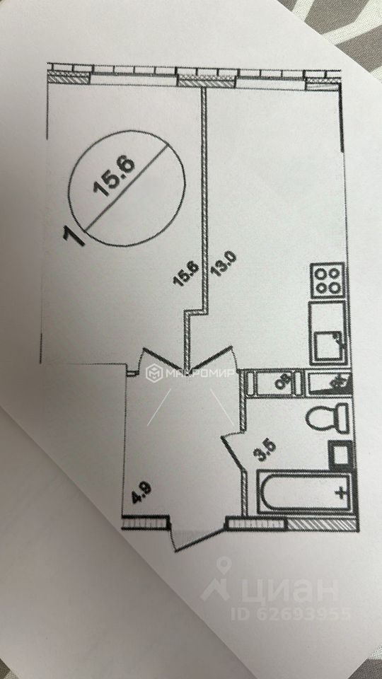 15,6 м²