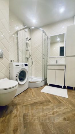 Функциональное планировочное решение: кухня-гостиная, столовая зона у окна, уютная зона спальни так же размещена у окна. Объединенная ванная комната, где установлена стиральная машина.
