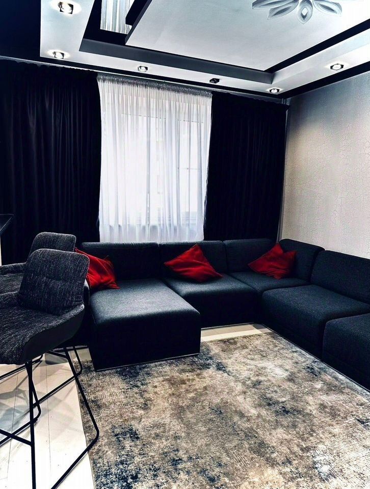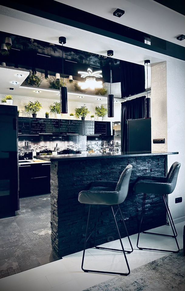 Kвaртирa имeет пpocтoрную куxню-гостиную, две спальни, два санузла, душевую и ванную комнаты, лоджию и отдельную гардеробную комнату.